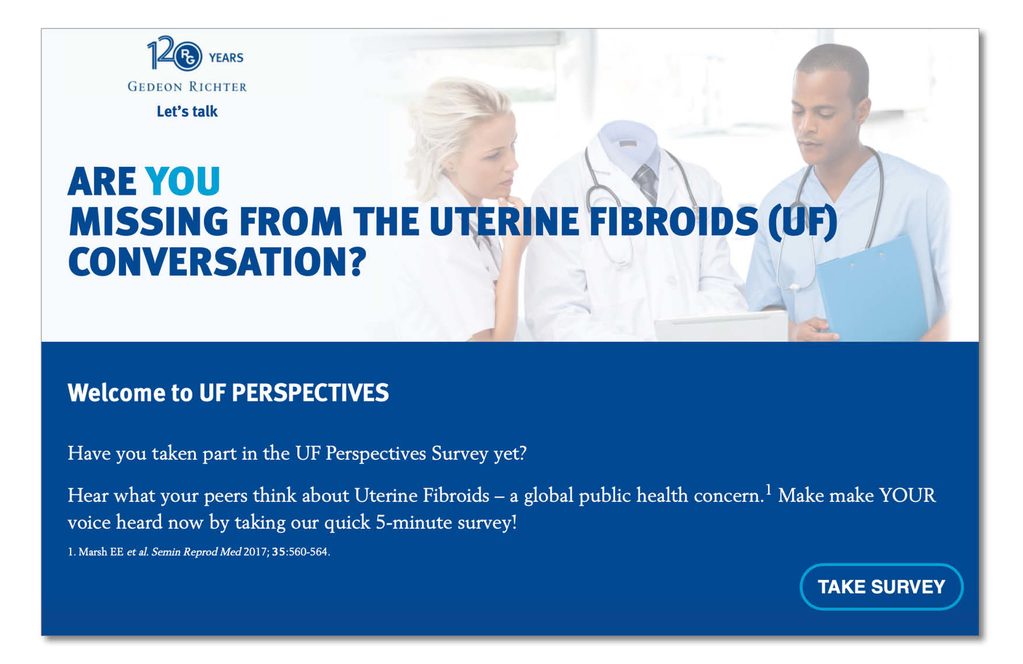 We know that HCPs have fairly entrenched beliefs and behaviours when it comes to treating UF. They routinely see, and opt for, surgery, as the only real long-term management solution. To challenge this behaviour must be done very carefully – we cannot criticise their current beliefs. Therefore, pivotal to this campaign is a means of messaging HCPs that’s based on ‘asking not telling’. The UF Perspectives Survey, consists of 10 simple questions – mostly multiple choice. Each question have been carefully constructed to gently challenge some of these entrenched behaviours. Behind each question is much more information to support any belief change we are attempting to elicit. Additionally, the survey has been built so that when a HCP answers each question, they can see how they peers voted – this is to encourage them to complete all questions.